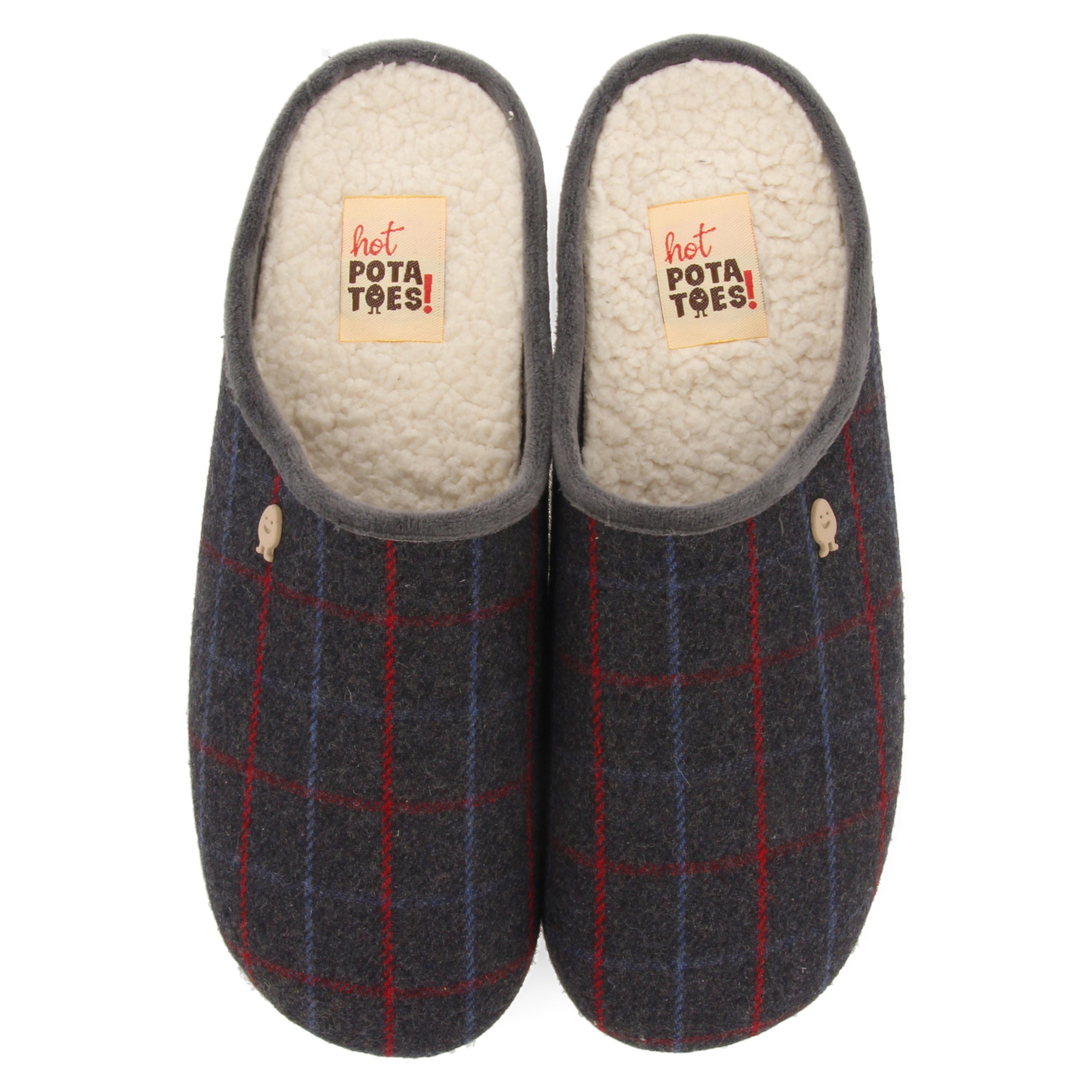 Sloffen voor oude mannen? Niet met Hot Potatoes! Dit ruitje maakt niet alleen je slof, maar je hele outfit hip. Comfort en duurzaamheid maken deze Hot Potatoes tot een ware winteressential. Wedden dat jij ze niet meer uit wil doen? – Hot Potatoes pantoffel voor heren. Comfortabel en Made in Spain. Vervaardigd van polyester en de zool is van natuurlijk rubber met gerecyclede kunststof snippers. Met uitneembare inlegzool van 100% gerecycled PU. Hot Potatoes zijn koud wasbaar.