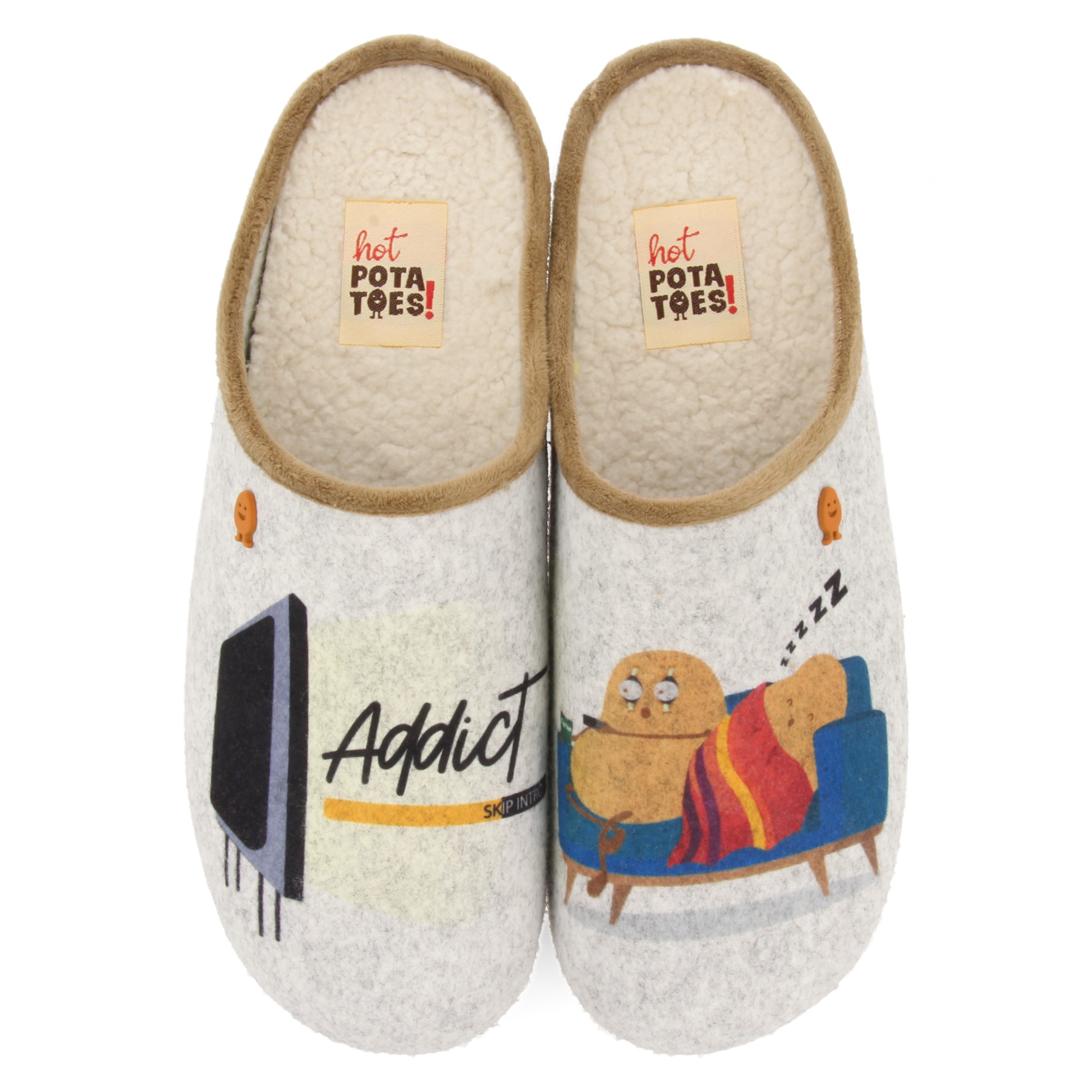 Hot Potato, Couch Potato of Hot Couch Potato? Met deze sloffen begrijpt iedereen dat jij met rust gelaten moet worden als je je favo programma op tv kijkt. Als je dan toch eens van de bank afkomt, dan zorgt het zachte voetbed in combinatie met de stevige buitenzool voor de steun die je voeten verdienen. – Hot Potatoes pantoffel voor heren. Comfortabel en Made in Spain. Vervaardigd van polyester en de zool is van natuurlijk rubber met gerecyclede kunststof snippers. Met uitneembare inlegzool van 100% gerecycled PU. Hot Potatoes zijn koud wasbaar.