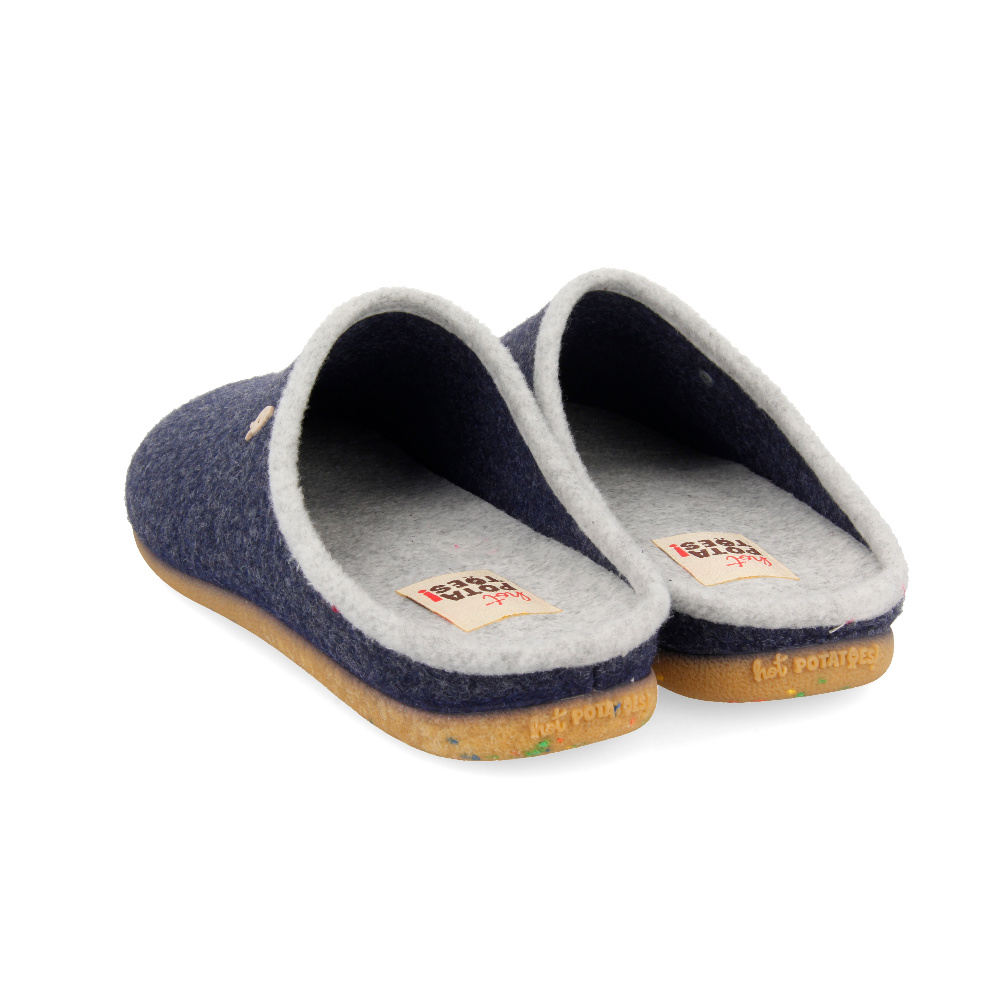 Hot Potatoes pantoffel voor heren. Comfortabel en Made in Spain. Vervaardigd van polyester en de zool is gemaakt van gerecycled rubber en gerecycled EVA. Met uitneembare inlegzool van textiel.