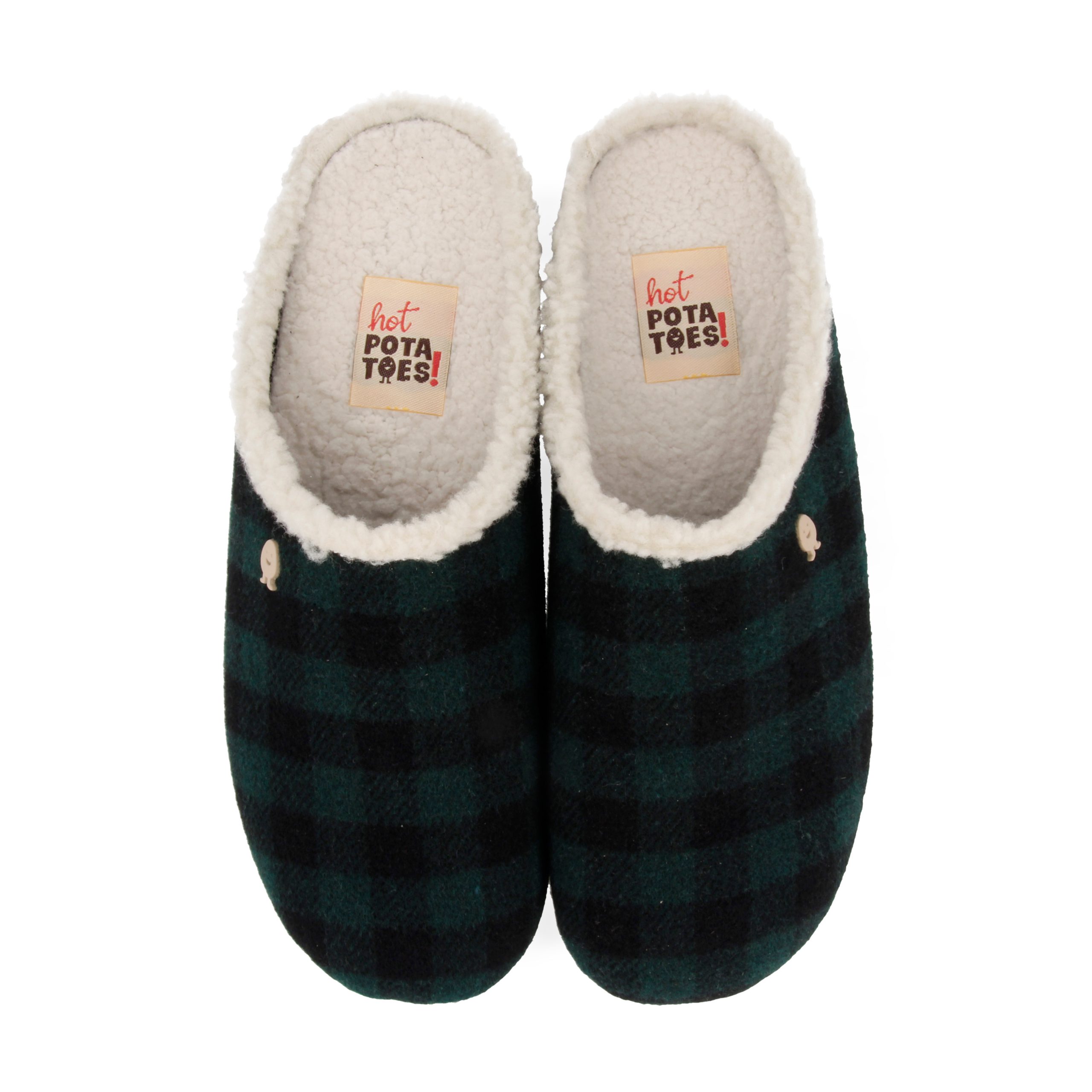 Een klassiek ruitje met een zacht kraagje: kan iets er nog knusser uit zien dan dit? En met de speciale inlegzool die in alle Hot Potatoes sloffen zit, voel je dat knusse gevoel tot in je voeten. Geef ze eindelijk eens de aandacht die ze verdienen met comfy demping en ondersteuning waar ze het wel kunnen gebruiken. – Hot Potatoes pantoffel voor heren. Comfortabel en Made in Spain. Vervaardigd van polyester en de zool is van natuurlijk rubber met gerecyclede kunststof snippers. Met uitneembare inlegzool van 100% gerecycled PU. Hot Potatoes zijn koud wasbaar.